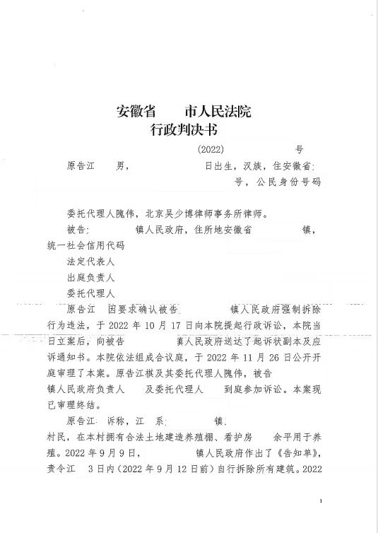 本案代理律師 北京吳少博律師事務(wù)所隗偉 案情簡(jiǎn)介: 安徽省某市的江某,曾在村子內(nèi)修建了